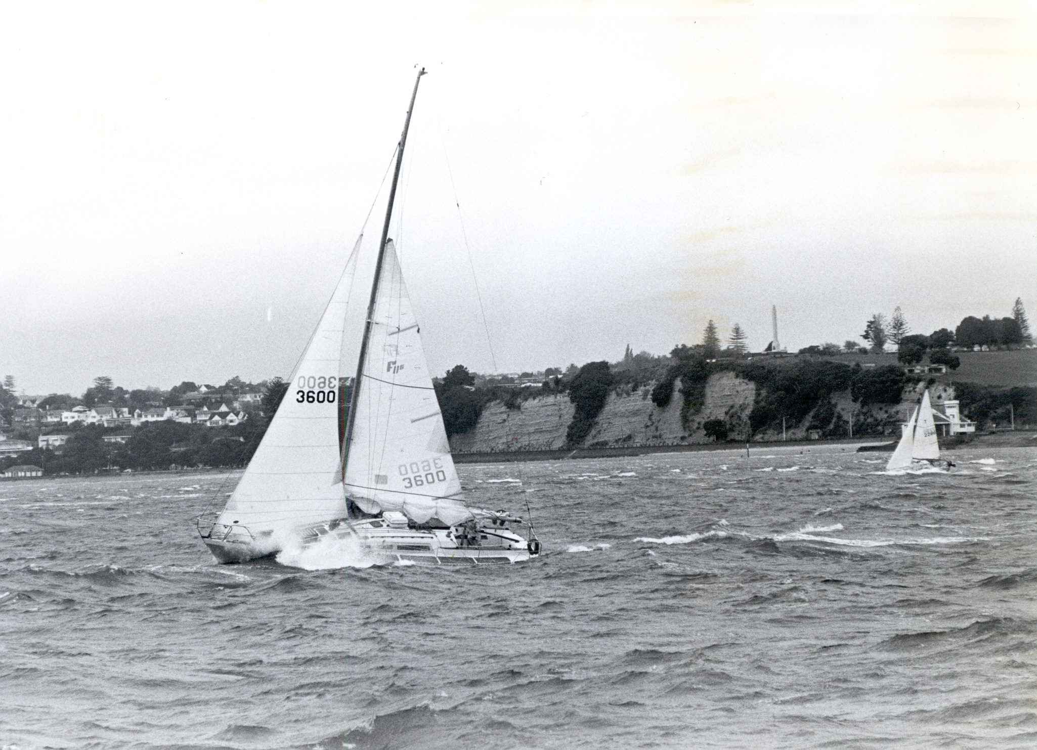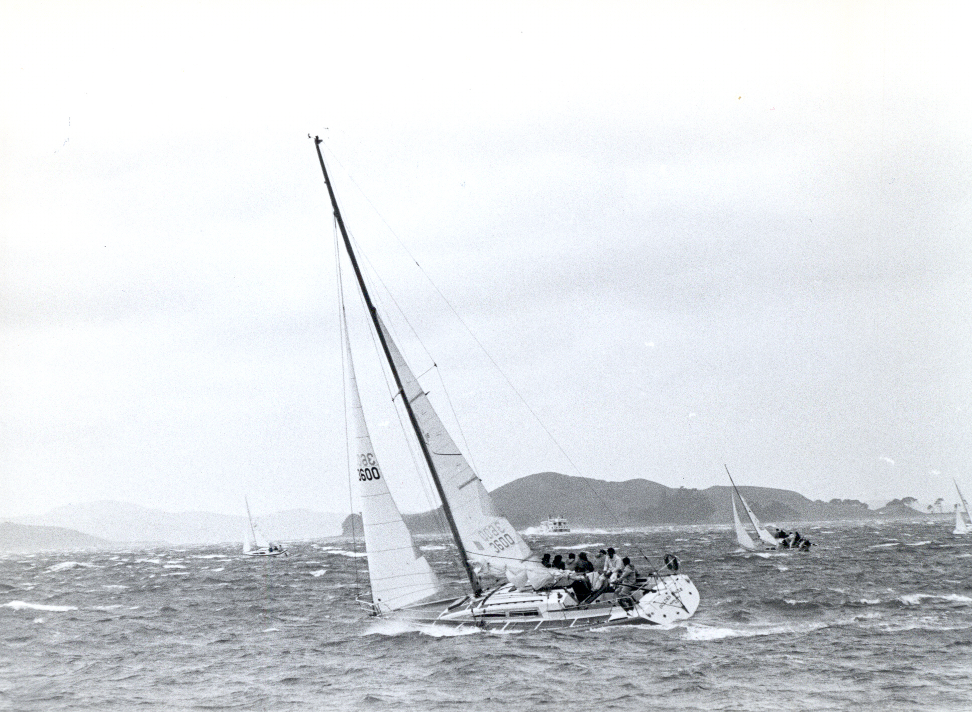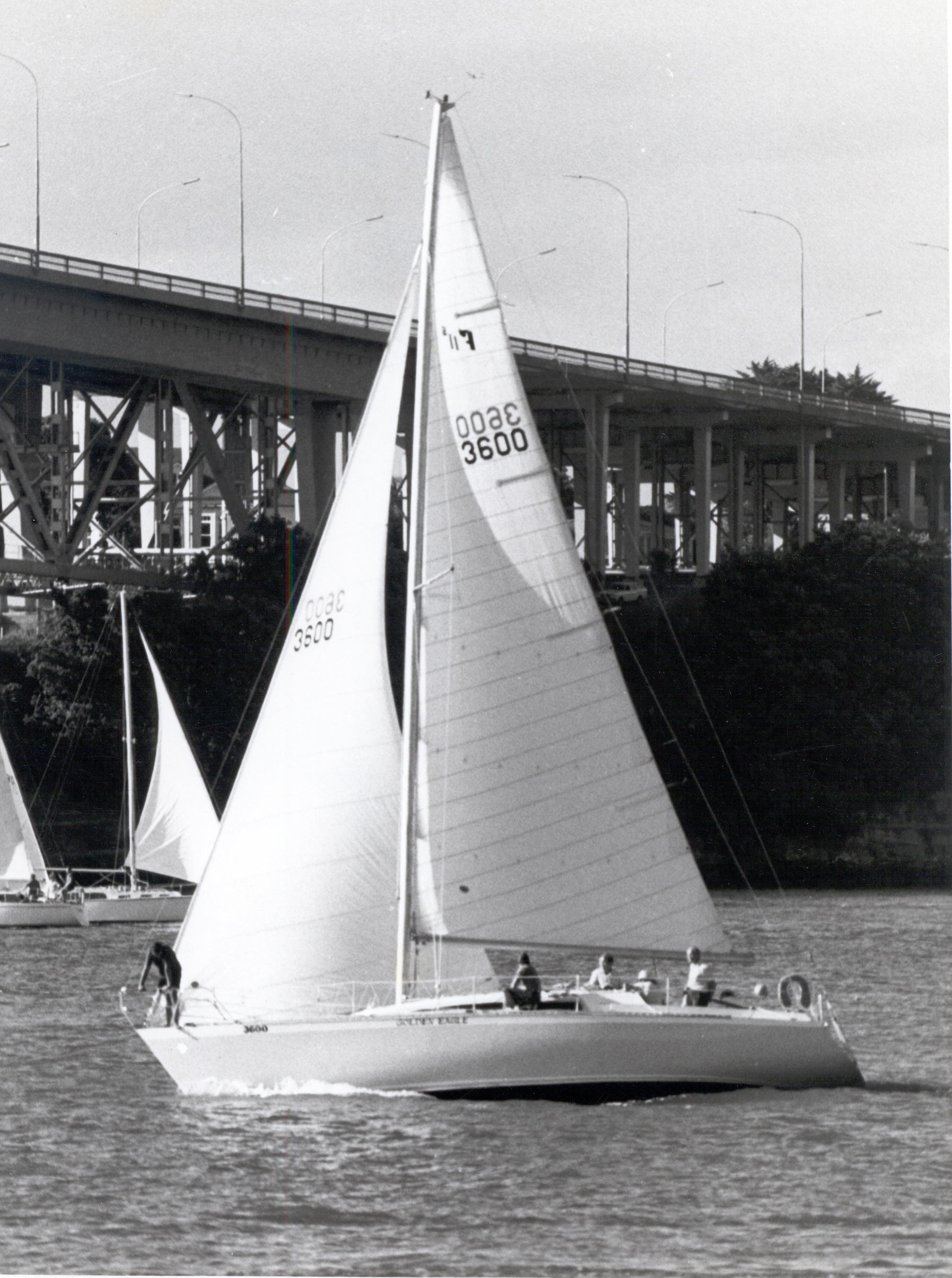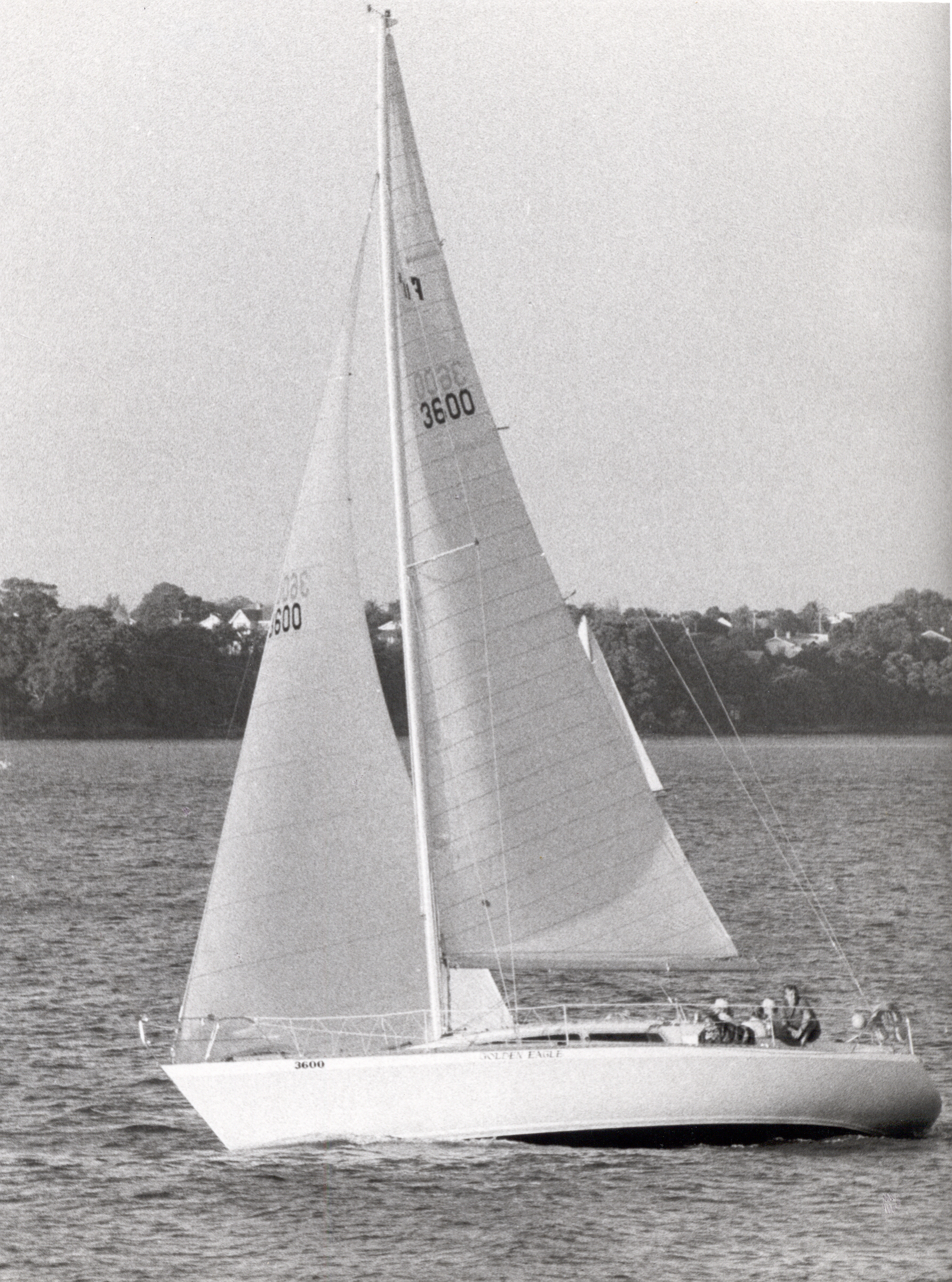The 1980 Round the North Island of New Zealand proved to be a very taxing race on both boats and crews. It was sailed in attrocious conditions with winds of up to 50 knots and rain so heavy that the crew on GOLDEN EAGLE “had dificulty seeing the bow of the yacht”. GOLDEN EAGLE sailed the entire race and finished 2nd over the line and 12th on handicap. Her skipper remarked that she “felt safe and behaved beautifully” thoughout the race.