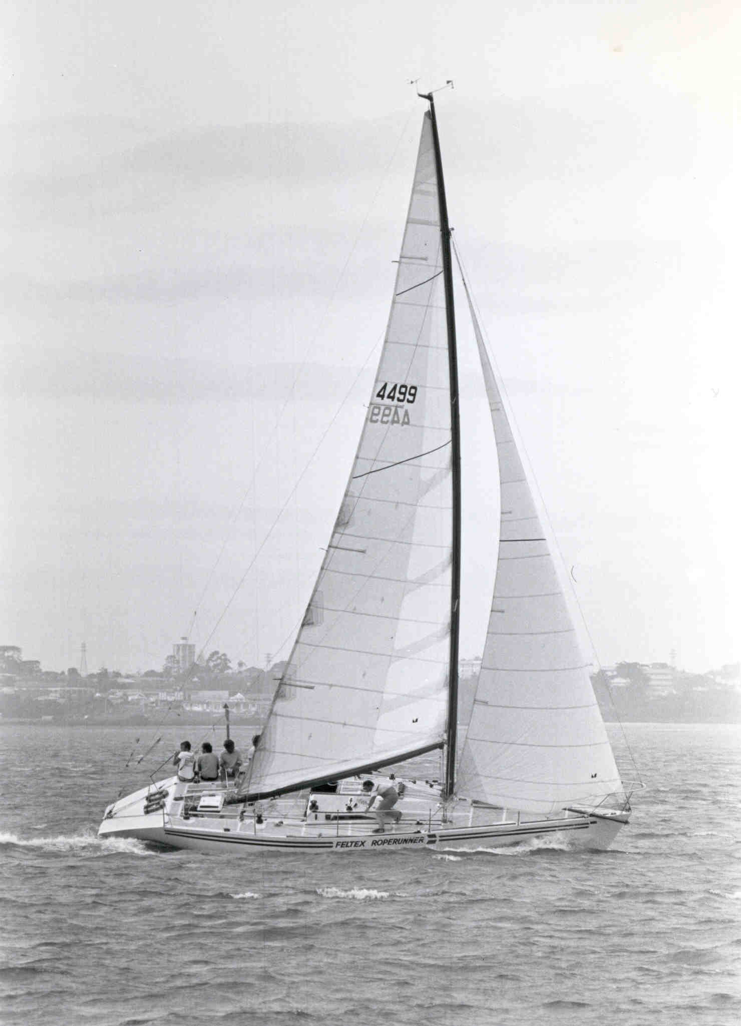 This design was conceived as an all-out Admiral’s Cup yacht with no concession to any other style of racing or unnecessary creature comforts. The minimum rating of 30.0 feet was decided on not only for minimum capital outlay, ease of handling and a size of boat where optimum performance can be gained very easily in a lightish displacement yacht, but also because over the years minimum rating appears to have offered the best chance of producing the top all-round performance.